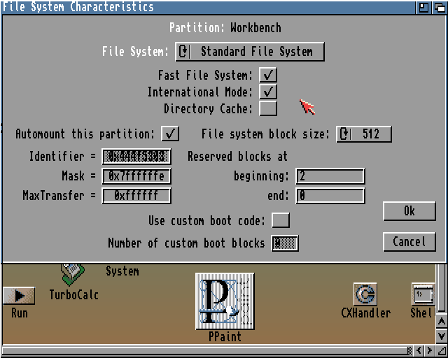 Partycja Work i Dane dają się założyć bez problemu. Gorzej z Workbench – wg RDBrecov powinna się zaczynać od cylindra 1, a HDToolBox nie pozwala ustawić początkowego cylindra mniejszego od 2. Zostawiam więc 2 i zobaczymy. Ok, Save Changes to Drive, Exit i Continue. Amiga się uruchamia od nowa i proszę: