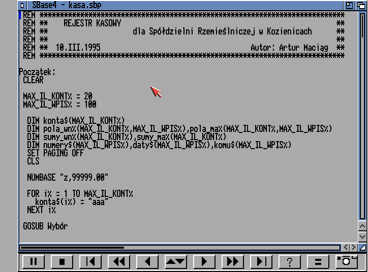 10 marca 1995. Pierwszy projekt programistyczny za kasę. Wcześniej była tylko kasa za artykuły do magazynu „Amiga”. Żeby było śmieszniej to ten program księgowy był w ciągłym użytku od 1995 do 2008 roku. Nie pamiętam ile mi zapłacili, ale jak na program działający bez dotykania przez 13 lat to pewnie za mało 🙂